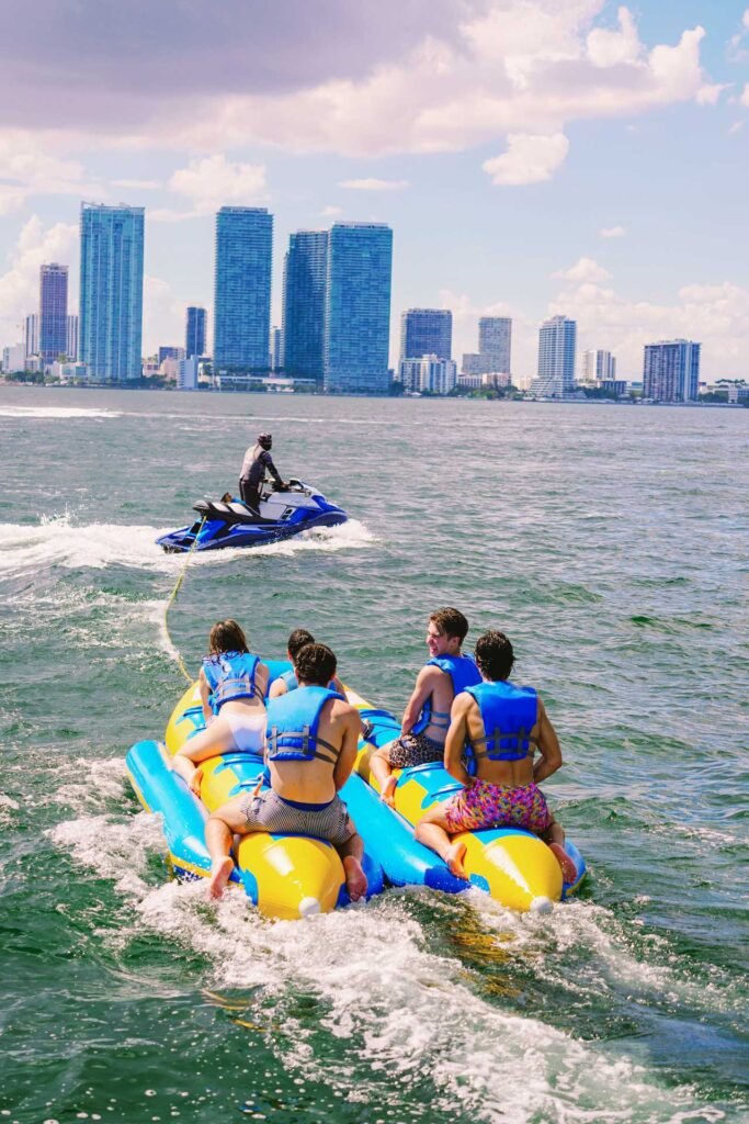 The Ultimate Thrill in Miami Are you ready for an exhilarating experience in Miami? Look no further! We have the perfect adventure for you that offers a wide range of thrilling activities. Whether you’re an adrenaline junkie or just looking for a fun-filled day, this experience has something for everyone. Party Boat One of the highlights of this adventure is the party boat. Step aboard and get ready to dance, socialize, and have a blast with fellow thrill-seekers. The boat is equipped with a state-of-the-art sound system, so you can groove to your favorite tunes while enjoying the stunning views of Miami’s coastline. It’s the perfect way to kickstart your day of excitement. Banana Ride If you’re up for a challenge, the banana ride is perfect for you. Hold on tight as you and your friends or family members climb onto a giant inflatable banana-shaped boat. The boat is then pulled by a speedboat, and it’s up to you to hold on and stay balanced as you’re whipped across the water. It’s a thrilling and hilarious experience that will have you laughing and screaming at the same time. Time in the Water No exhilarating experience in Miami would be complete without spending some time in the water. Take a dip and cool off in the crystal-clear waters of Miami. Whether you choose to swim, snorkel, or simply float on the surface, you’ll be surrounded by stunning scenery and marine life. It’s a chance to connect with nature and create unforgettable memories. This adventure offers the ultimate combination of adrenaline-pumping excitement, stunning scenery, and unforgettable memories. It’s perfect for individuals and families alike, as there’s something for everyone to enjoy. Whether you’re seeking an adrenaline rush or simply want to have a fun-filled day, this experience in Miami has it all. So, what are you waiting for? Get ready for the thrill of a lifetime and book your adventure in Miami today. You won’t regret it!